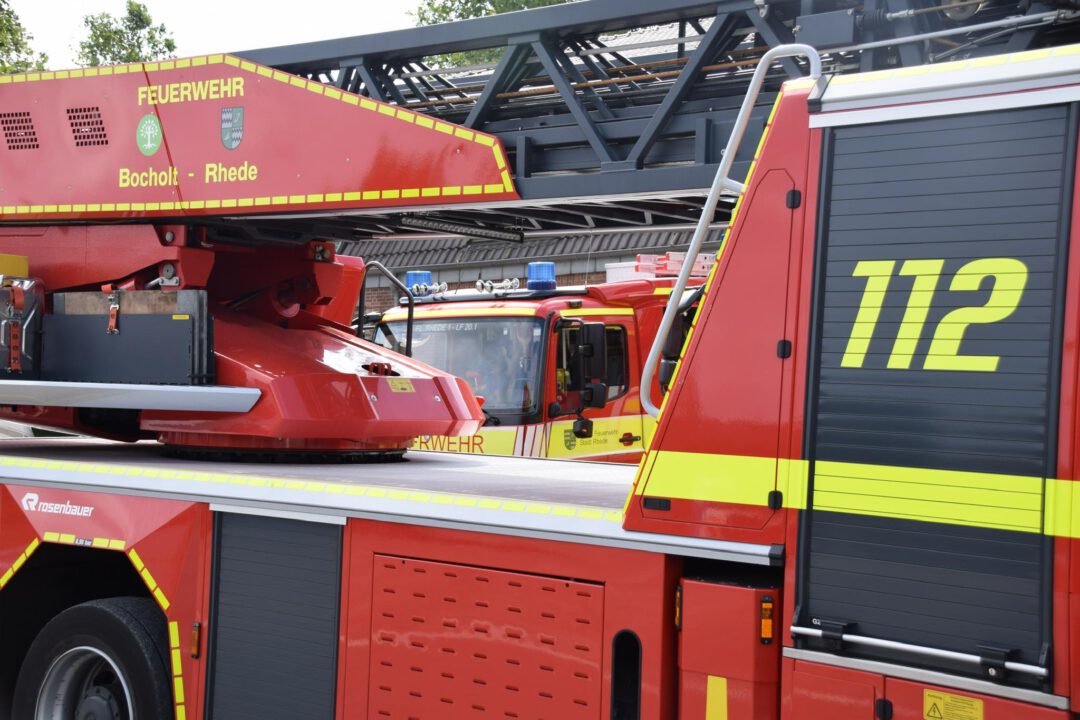 Fahrzeuge im Einsatz: KdoW, HLF 20/1, HLF 20/2, DLK 23/12 (FW Bocholt)