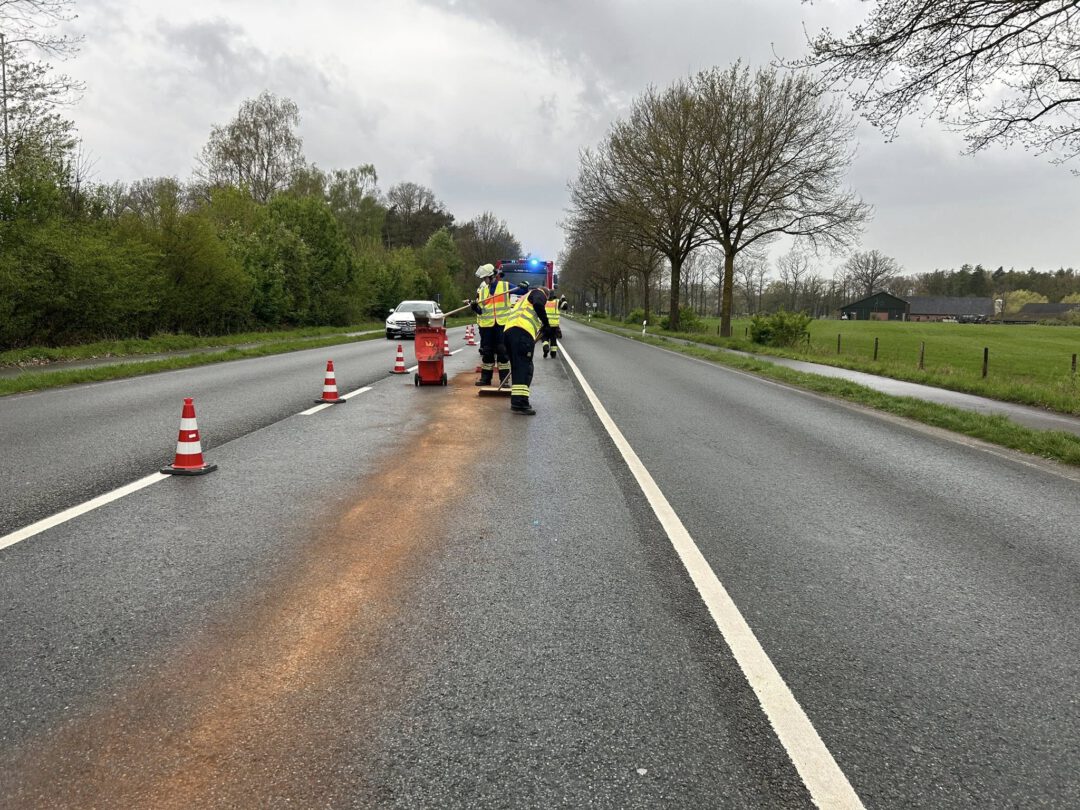 Am späten Nachmittag wurden wir zu einer Ölspur auf die Gronauer Straße gerufen. Auf der Gronauer Straße konnten wir keine Feststellung machen. Allerdings an der Bocholter Straße auf der Abbiegespur zur gemeldeten Straße. Dort beseitigten wir eine ca. 30 Meter lange Spur mittels Bindemittel. Da in Bocholt, wie auch in Borken an den Stadtgrenzen zu Rhede eine Ölspur war, kontrollierten in Absprache mit der Leitstelle auch bis zur jeweiligen Stadtgrenze. Auf Rheder Gebiet wurde allerdings nichts weiter festgestellt, so dass wir in Absprache mit den jeweiligen Kollegen nicht weiter tätig werden mussten. (MF)