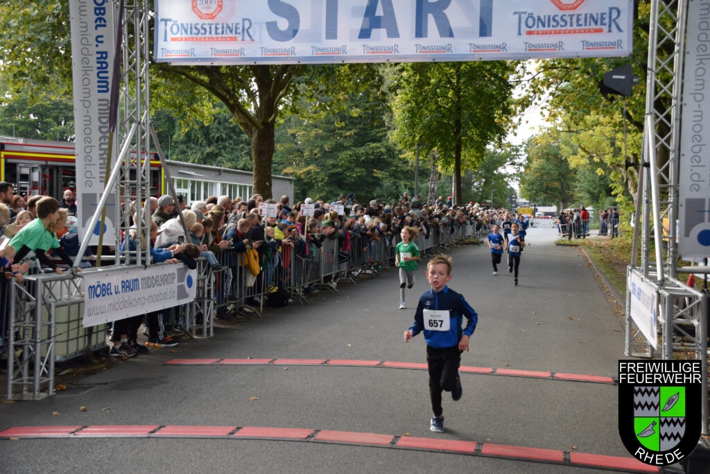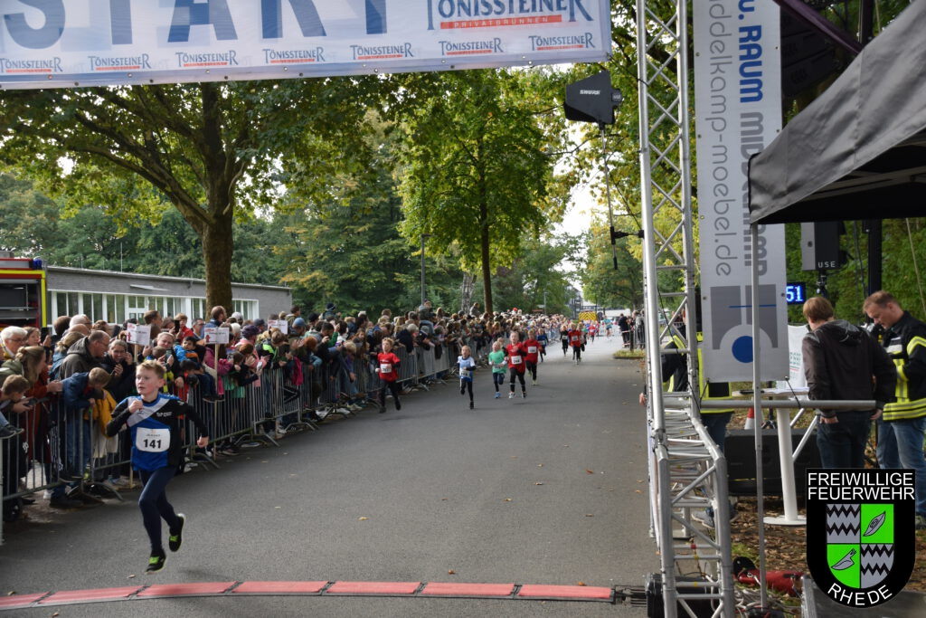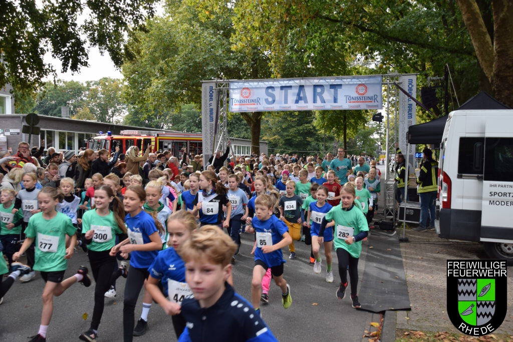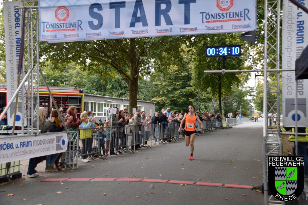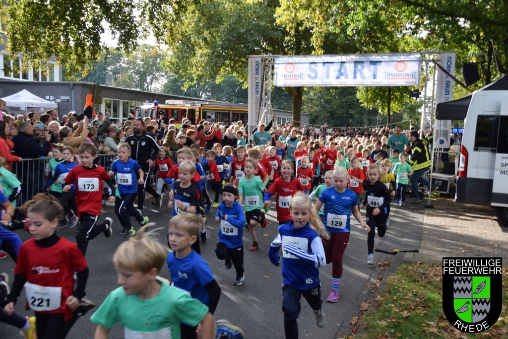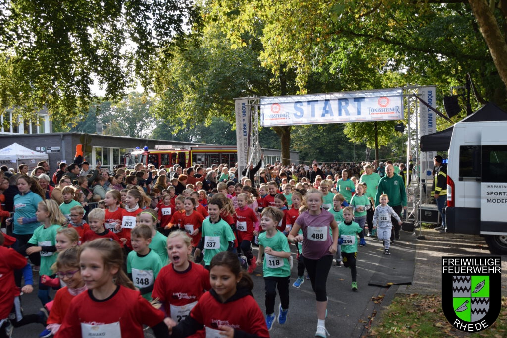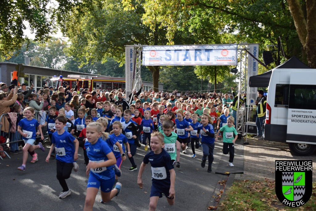 Die 8. Auflage unseres immer beliebter werdenden Volks- und Feuerwehrlauf war ein voller Erfolg. Mit 713 Läuferinnen und Läufern wurde auch im Jahr 2025 wieder ein neuer Teilnehmerrekord aufgestellt. Pünktlich um 10:15 Uhr startete bei perfektem Herbstwetter der Löschzwerge Mini-Lauf über 1,25 km mit einer überragenden Teilnehmerzahl von 271 Kindern. Bei den Mädchen durfte sich Mariia Novak über den ersten Platz freuen. Nach gerade mal 5 Minuten und 12 Sekunden konnte Moderator Matze Geisler sie über die Ziellinie peitschen. Nur 2 Sekunden später, also ein echter Fight, kam Jana Cox ins Ziel. Bei den Jungen sicherte sich Edi Muji den Platz auf dem goldenen Siegertreppchen mit einer Zeit von 05:02 Minuten. Kurz nachdem alle Kinder im Ziel waren, ging es auch sofort mit der nächsten Distanz weiter. Nun galt es 2,5km beim Löschzwerge Maxi-Lauf zu bewältigen. Ester Junge wurde hier Till Berninger mit einer Zeit von 09:32 Minuten, das erste Mädchen war Marika Steenkamp mit einer Zeit knapp über 10 Minuten. Nach den beiden Läufen gab es die Siegerehrung durch Wehrführer Christoph Terwiel und Hauptorganisator Frank Benning. Wie immer gab es großartige Sachpreise. Zudem erhielt jeder Teilnehmer der beiden Läufe eine Medaille als Andenken. Nachdem alle ihre Preise hatten, startete auch schon der 5km Jedermann Lauf. Den Sieg bei den Damen holte sich hier Jarla Schlütter vom LAZ Rhede mit 19:45 Minuten. Bei den Herren gewann Jarne Semmler, ebenfalls vom LAZ Rhede mit einer Zeit von 18:13 Minuten. Als letztes startete dann der Volkslauf über 10 km mit über 100 Teilnehmern. Jana Groß-Hardt holte sich mit 38:16 Minuten den Sieg bei den Damen. Richtig Gas gab Maximillian Jakobs. In gerade mal 34 Minuten und 11 Sekunden bewältigte er die 10 km. Viele dachten das es der Streckenrekord werden könnte, beim Zieleinlauf wurde dann aber klar, dass es doch nicht reichte. Den Rekord hält mit 33 Minuten Marcel Eckers aus dem Team der Feuerwehr Rhede. Dieser wurde 2016, also bei der 1. Auflage des Volks- und Feuerwehrlaufes, aufgestellt. Auch wieder gut angekommen ist die Team Wertung, bei denen in verschiedenen Bewertungsgruppen die Teams mit den meist gelaufenen Kilometern einen Preis ergattern können. Die Gewinner entnehmt bitte den Fotos. Alle Ergebnisse findet ihr unter: https://time-and-voice.com/…/rhede-2025/ergebnisse…