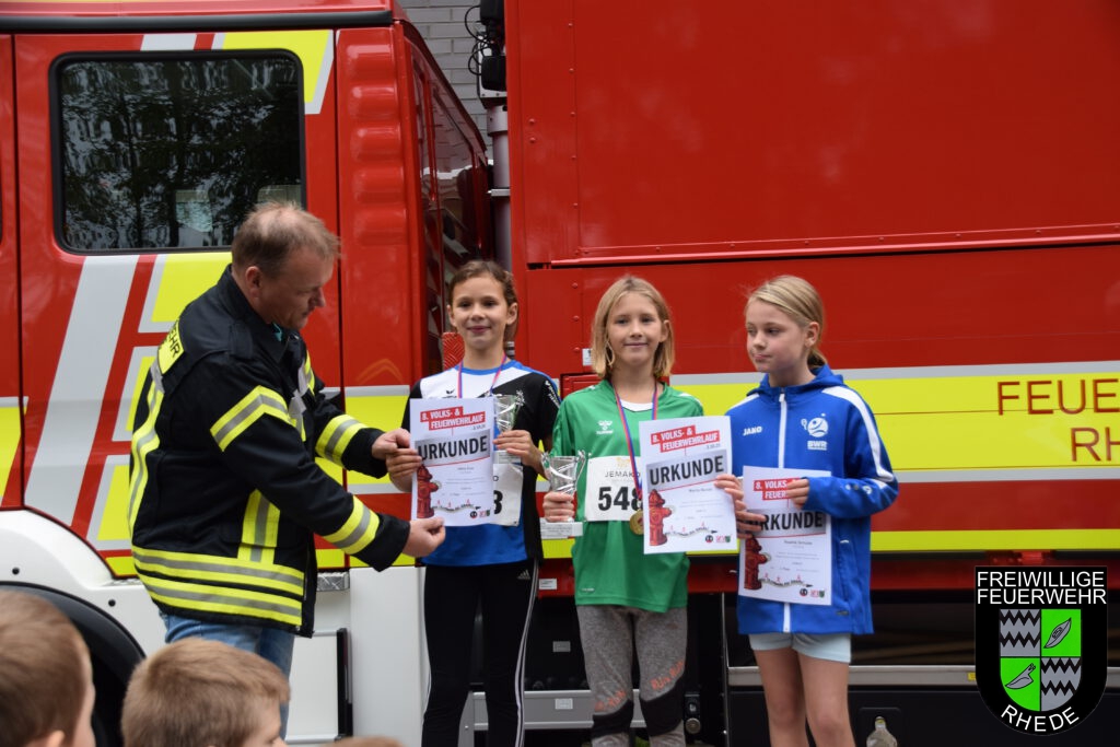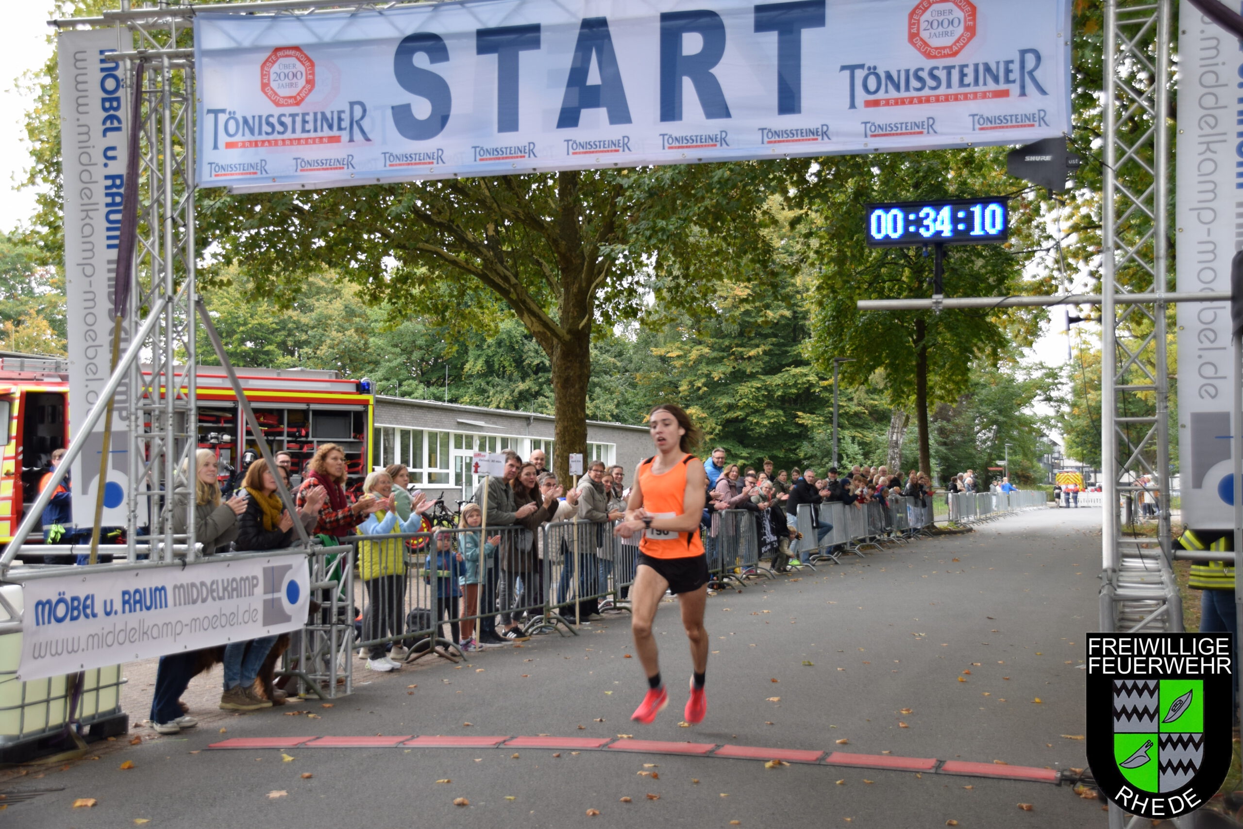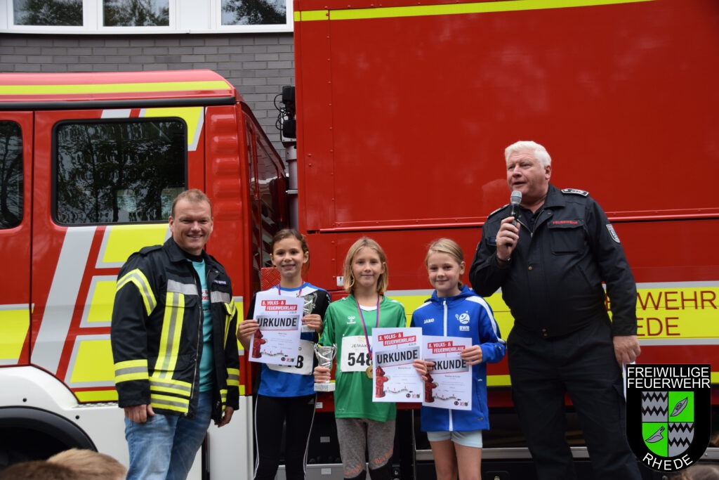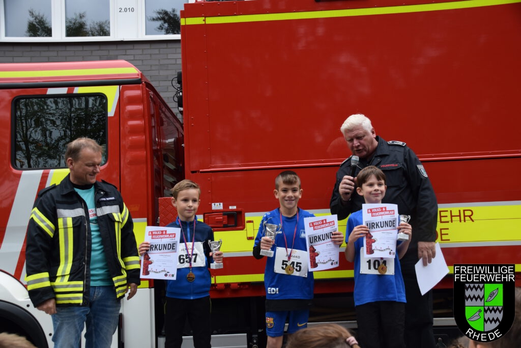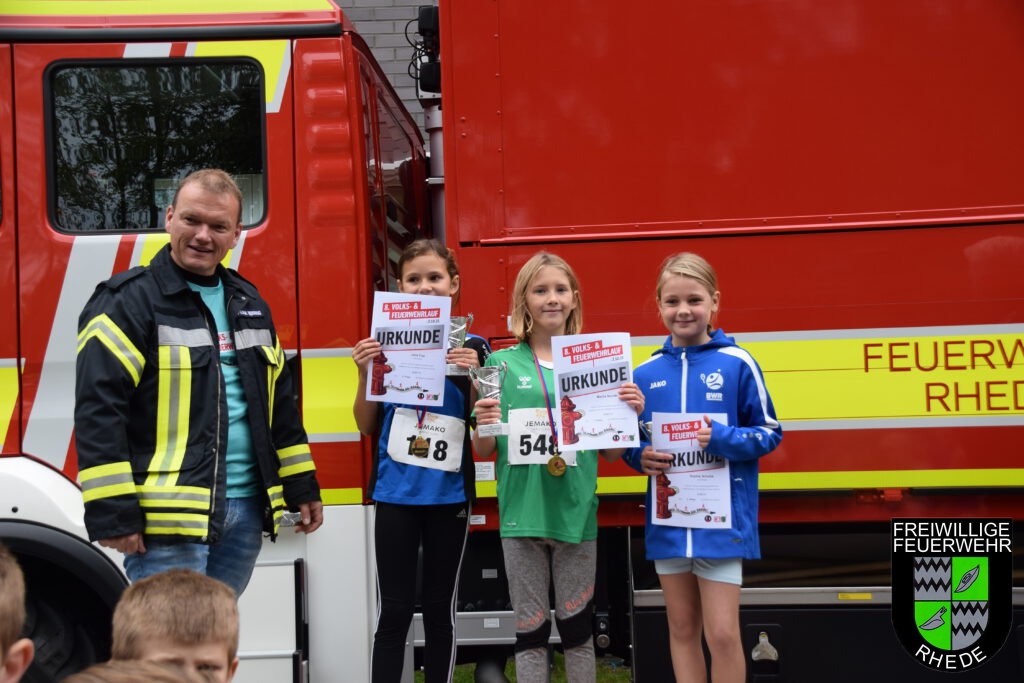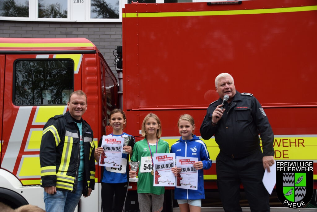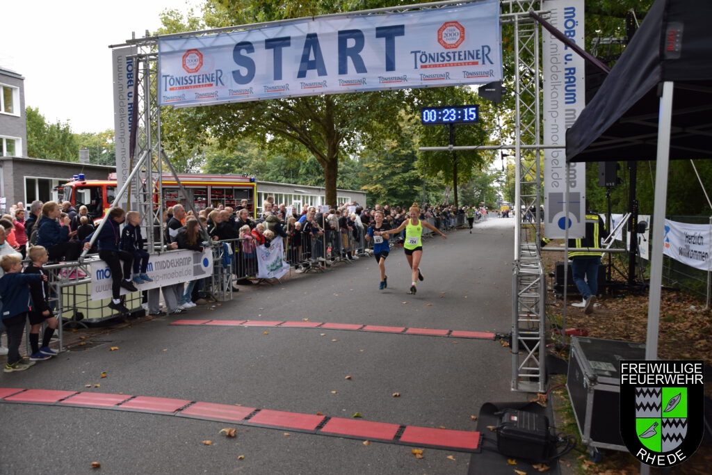Die 8. Auflage unseres immer beliebter werdenden Volks- und Feuerwehrlauf war ein voller Erfolg. Mit 713 Läuferinnen und Läufern wurde auch im Jahr 2025 wieder ein neuer Teilnehmerrekord aufgestellt. Pünktlich um 10:15 Uhr startete bei perfektem Herbstwetter der Löschzwerge Mini-Lauf über 1,25 km mit einer überragenden Teilnehmerzahl von 271 Kindern. Bei den Mädchen durfte sich Mariia Novak über den ersten Platz freuen. Nach gerade mal 5 Minuten und 12 Sekunden konnte Moderator Matze Geisler sie über die Ziellinie peitschen. Nur 2 Sekunden später, also ein echter Fight, kam Jana Cox ins Ziel. Bei den Jungen sicherte sich Edi Muji den Platz auf dem goldenen Siegertreppchen mit einer Zeit von 05:02 Minuten. Kurz nachdem alle Kinder im Ziel waren, ging es auch sofort mit der nächsten Distanz weiter. Nun galt es 2,5km beim Löschzwerge Maxi-Lauf zu bewältigen. Ester Junge wurde hier Till Berninger mit einer Zeit von 09:32 Minuten, das erste Mädchen war Marika Steenkamp mit einer Zeit knapp über 10 Minuten. Nach den beiden Läufen gab es die Siegerehrung durch Wehrführer Christoph Terwiel und Hauptorganisator Frank Benning. Wie immer gab es großartige Sachpreise. Zudem erhielt jeder Teilnehmer der beiden Läufe eine Medaille als Andenken. Nachdem alle ihre Preise hatten, startete auch schon der 5km Jedermann Lauf. Den Sieg bei den Damen holte sich hier Jarla Schlütter vom LAZ Rhede mit 19:45 Minuten. Bei den Herren gewann Jarne Semmler, ebenfalls vom LAZ Rhede mit einer Zeit von 18:13 Minuten. Als letztes startete dann der Volkslauf über 10 km mit über 100 Teilnehmern. Jana Groß-Hardt holte sich mit 38:16 Minuten den Sieg bei den Damen. Richtig Gas gab Maximillian Jakobs. In gerade mal 34 Minuten und 11 Sekunden bewältigte er die 10 km. Viele dachten das es der Streckenrekord werden könnte, beim Zieleinlauf wurde dann aber klar, dass es doch nicht reichte. Den Rekord hält mit 33 Minuten Marcel Eckers aus dem Team der Feuerwehr Rhede. Dieser wurde 2016, also bei der 1. Auflage des Volks- und Feuerwehrlaufes, aufgestellt. Auch wieder gut angekommen ist die Team Wertung, bei denen in verschiedenen Bewertungsgruppen die Teams mit den meist gelaufenen Kilometern einen Preis ergattern können. Die Gewinner entnehmt bitte den Fotos. Alle Ergebnisse findet ihr unter: https://time-and-voice.com/…/rhede-2025/ergebnisse…
