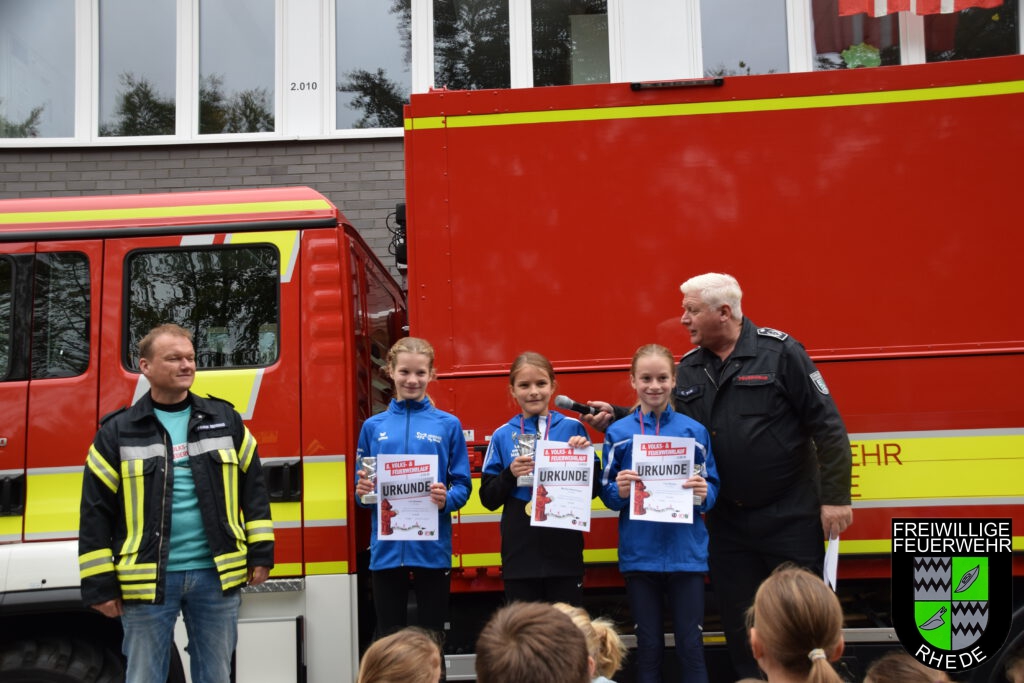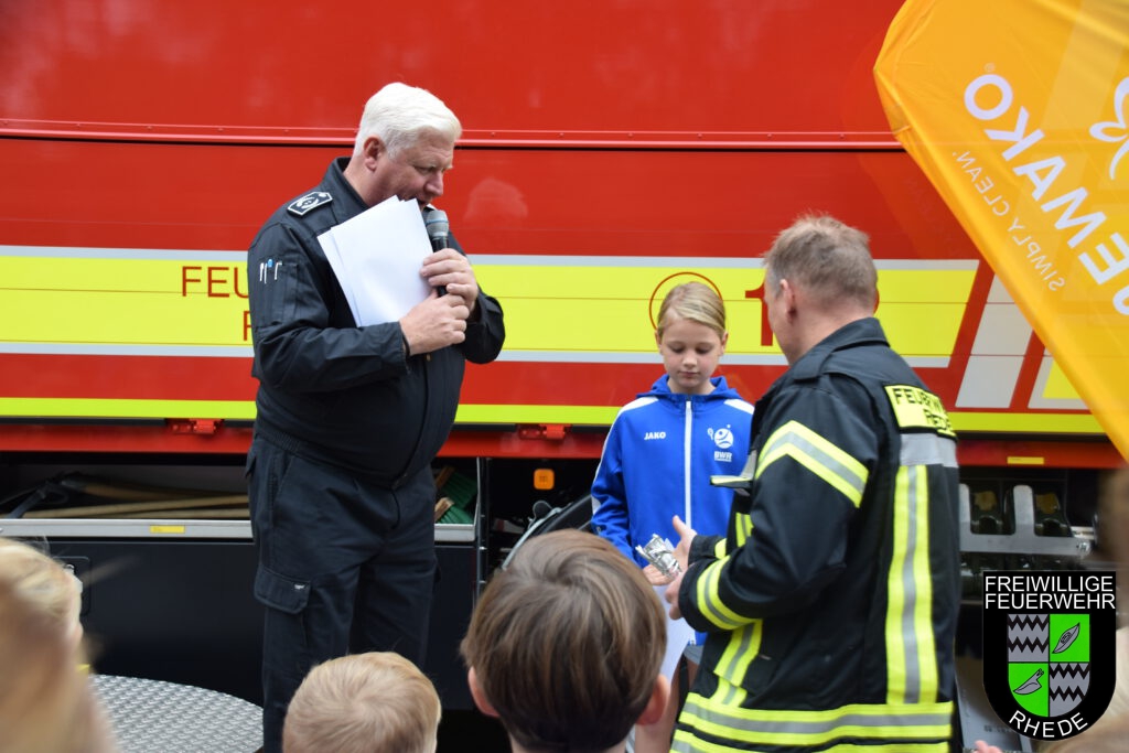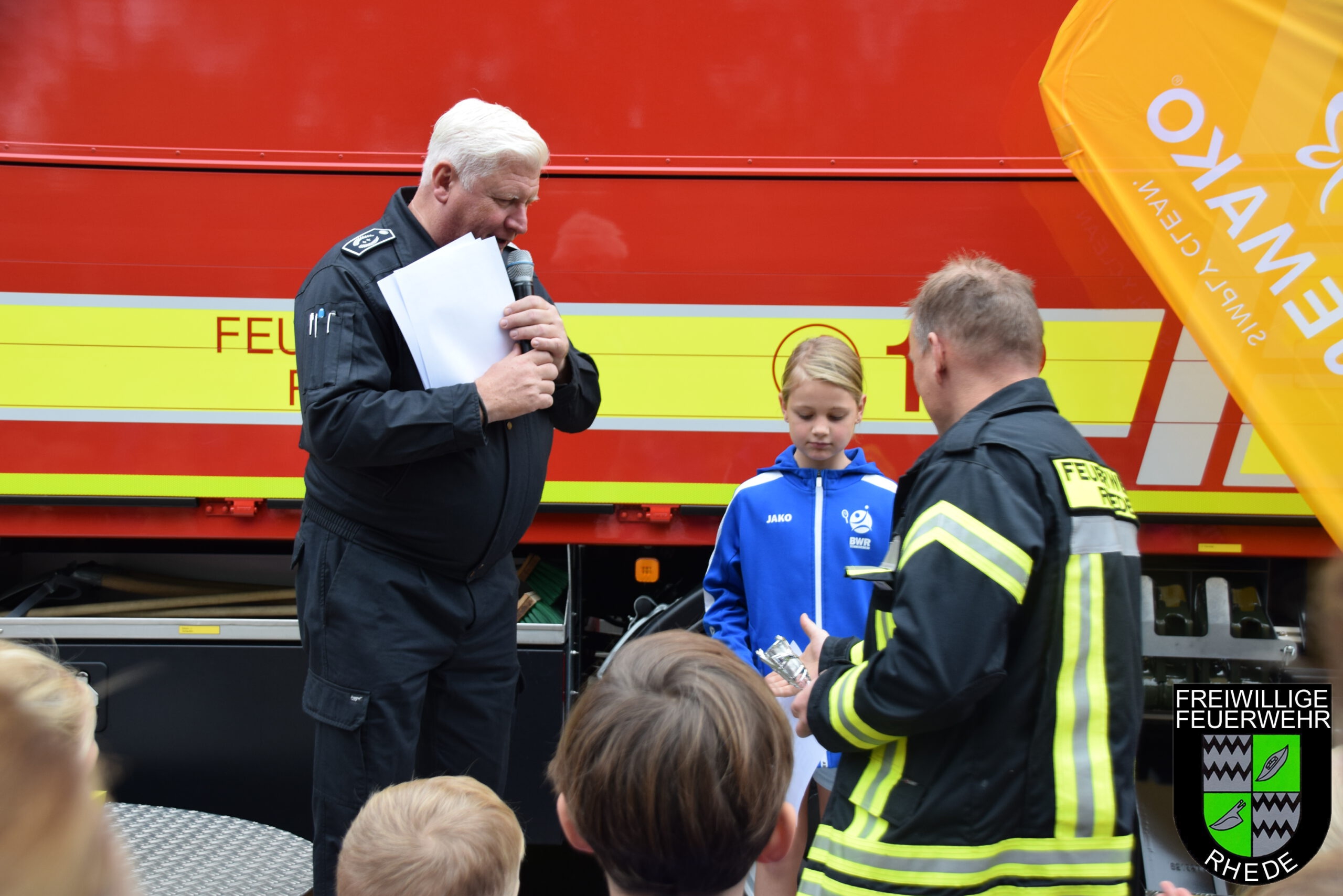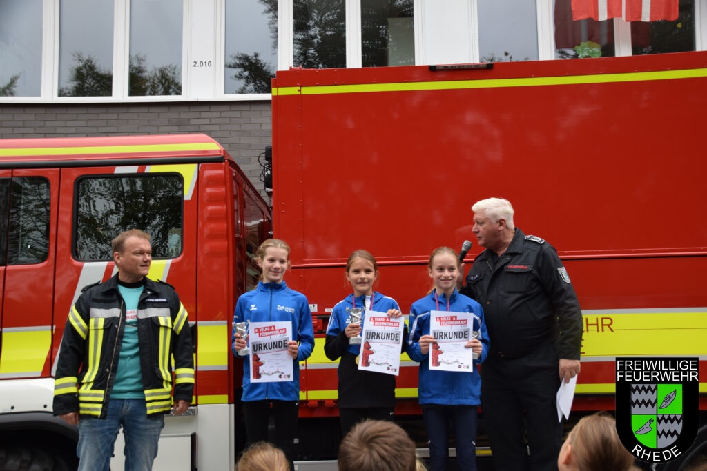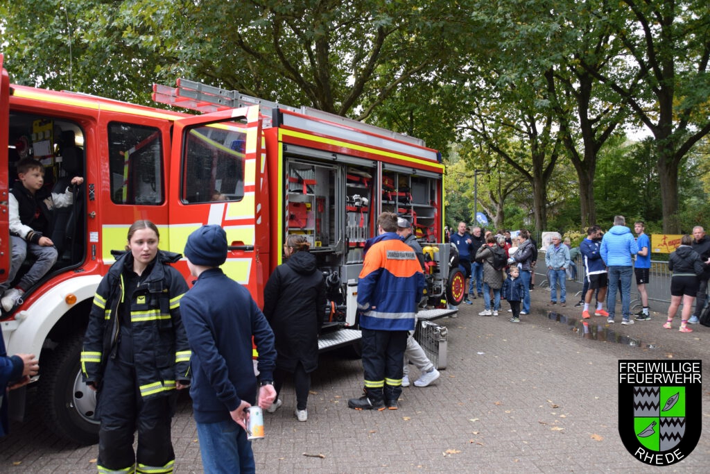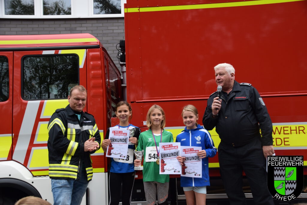 Die 8. Auflage unseres immer beliebter werdenden Volks- und Feuerwehrlauf war ein voller Erfolg. Mit 713 Läuferinnen und Läufern wurde auch im Jahr 2025 wieder ein neuer Teilnehmerrekord aufgestellt. Pünktlich um 10:15 Uhr startete bei perfektem Herbstwetter der Löschzwerge Mini-Lauf über 1,25 km mit einer überragenden Teilnehmerzahl von 271 Kindern. Bei den Mädchen durfte sich Mariia Novak über den ersten Platz freuen. Nach gerade mal 5 Minuten und 12 Sekunden konnte Moderator Matze Geisler sie über die Ziellinie peitschen. Nur 2 Sekunden später, also ein echter Fight, kam Jana Cox ins Ziel. Bei den Jungen sicherte sich Edi Muji den Platz auf dem goldenen Siegertreppchen mit einer Zeit von 05:02 Minuten. Kurz nachdem alle Kinder im Ziel waren, ging es auch sofort mit der nächsten Distanz weiter. Nun galt es 2,5km beim Löschzwerge Maxi-Lauf zu bewältigen. Ester Junge wurde hier Till Berninger mit einer Zeit von 09:32 Minuten, das erste Mädchen war Marika Steenkamp mit einer Zeit knapp über 10 Minuten. Nach den beiden Läufen gab es die Siegerehrung durch Wehrführer Christoph Terwiel und Hauptorganisator Frank Benning. Wie immer gab es großartige Sachpreise. Zudem erhielt jeder Teilnehmer der beiden Läufe eine Medaille als Andenken. Nachdem alle ihre Preise hatten, startete auch schon der 5km Jedermann Lauf. Den Sieg bei den Damen holte sich hier Jarla Schlütter vom LAZ Rhede mit 19:45 Minuten. Bei den Herren gewann Jarne Semmler, ebenfalls vom LAZ Rhede mit einer Zeit von 18:13 Minuten. Als letztes startete dann der Volkslauf über 10 km mit über 100 Teilnehmern. Jana Groß-Hardt holte sich mit 38:16 Minuten den Sieg bei den Damen. Richtig Gas gab Maximillian Jakobs. In gerade mal 34 Minuten und 11 Sekunden bewältigte er die 10 km. Viele dachten das es der Streckenrekord werden könnte, beim Zieleinlauf wurde dann aber klar, dass es doch nicht reichte. Den Rekord hält mit 33 Minuten Marcel Eckers aus dem Team der Feuerwehr Rhede. Dieser wurde 2016, also bei der 1. Auflage des Volks- und Feuerwehrlaufes, aufgestellt. Auch wieder gut angekommen ist die Team Wertung, bei denen in verschiedenen Bewertungsgruppen die Teams mit den meist gelaufenen Kilometern einen Preis ergattern können. Die Gewinner entnehmt bitte den Fotos. Alle Ergebnisse findet ihr unter: https://time-and-voice.com/…/rhede-2025/ergebnisse…