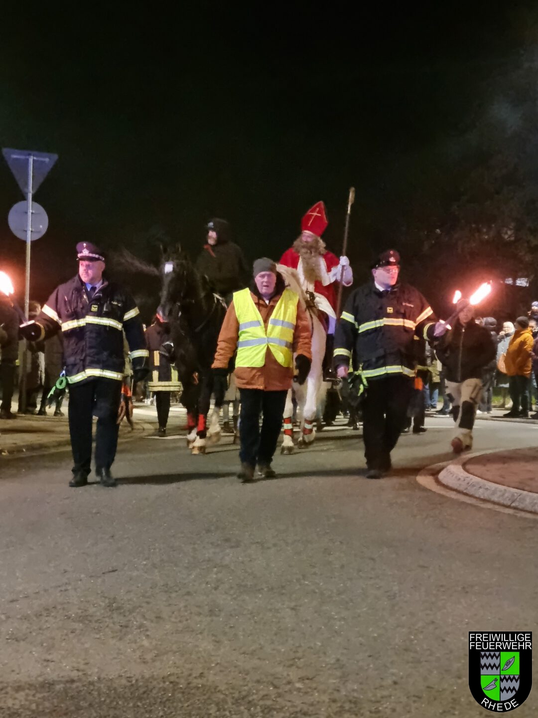 Am 04.12.2025 war es wieder soweit: der traditionelle Nikolausumzug in Rhede zog durch die Innenstadt. Wie jedes Jahr unterstützte die Feuerwehr Rhede den Rheder Heimatverein als Veranstalter des Zuges bei der sicheren Umsetzung. Die Feuerwehr begleitete den Zug mit Personal, leuchtete die Tütenausgabe großflächig aus und sicherte in Zusammenarbeit mit der Polizei und den örtlichen Landwirten die Zugstrecke ab. (JW)