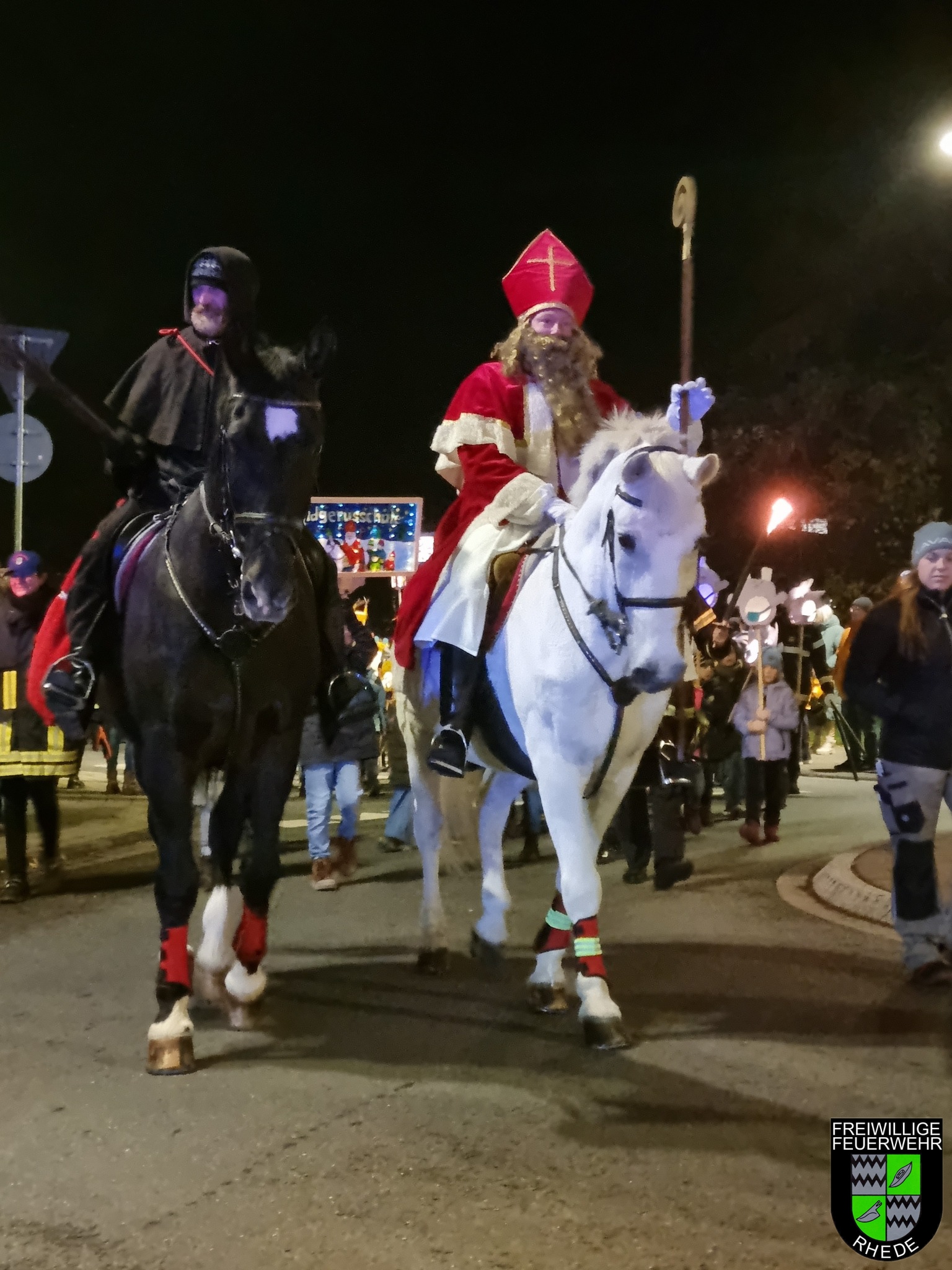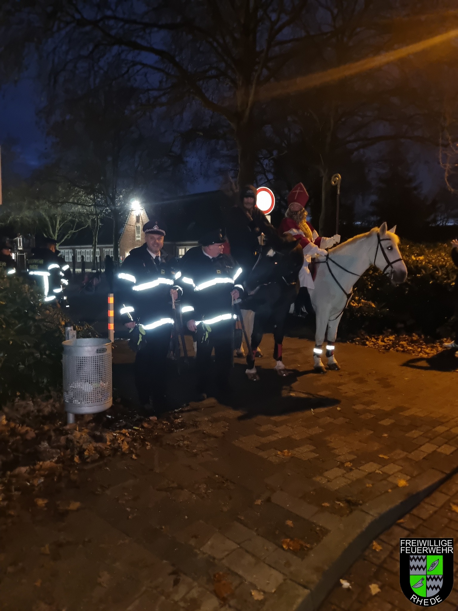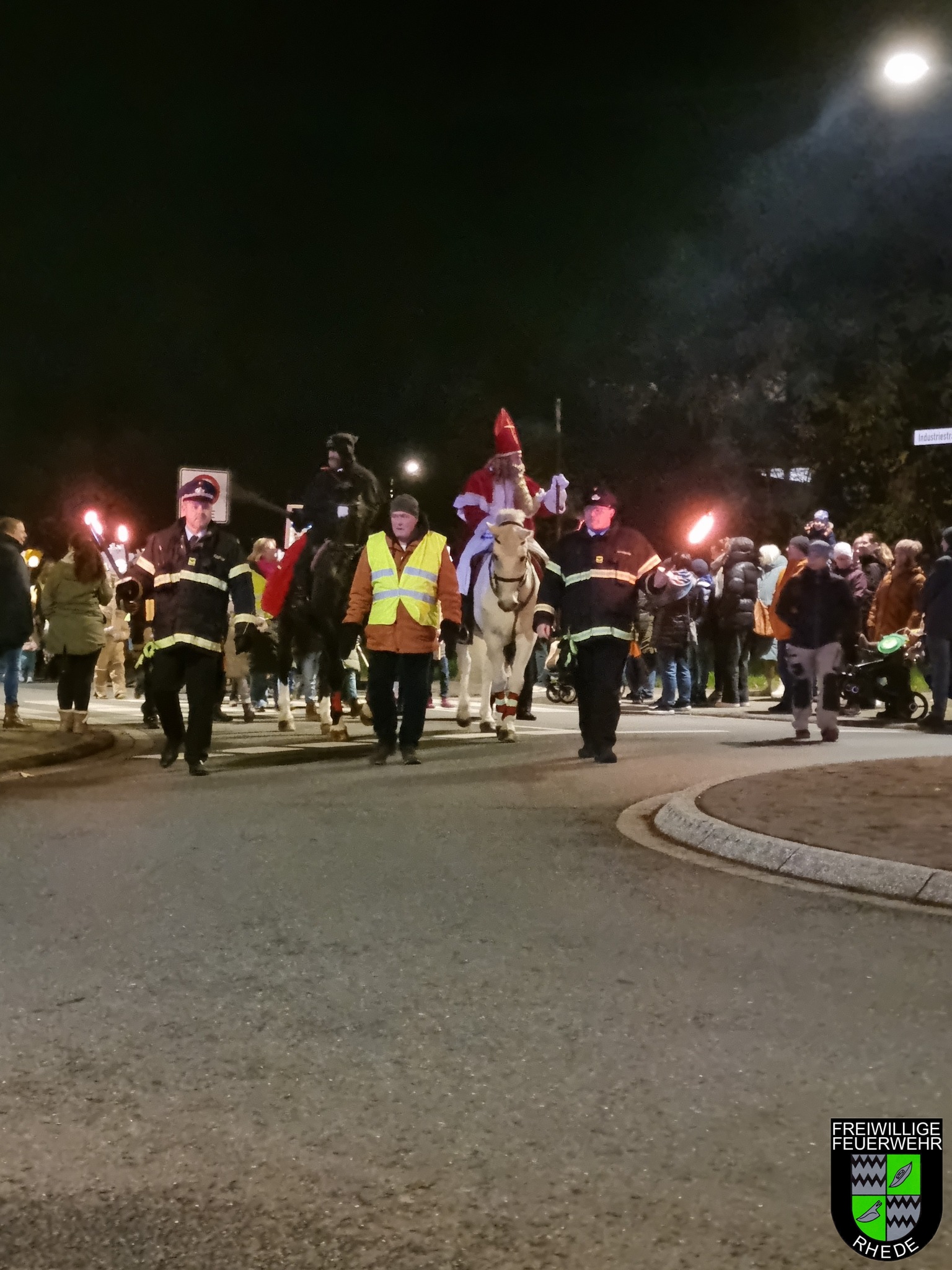 Am 04.12.2025 war es wieder soweit: der traditionelle Nikolausumzug in Rhede zog durch die Innenstadt. Wie jedes Jahr unterstützte die Feuerwehr Rhede den Rheder Heimatverein als Veranstalter des Zuges bei der sicheren Umsetzung. Die Feuerwehr begleitete den Zug mit Personal, leuchtete die Tütenausgabe großflächig aus und sicherte in Zusammenarbeit mit der Polizei und den örtlichen Landwirten die Zugstrecke ab. (JW)